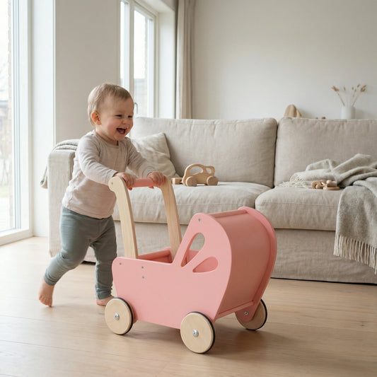 Dolls Stroller pram - Heart Natural Wood