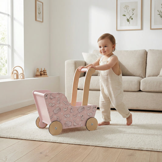 Modern Dolls Stroller (Pram) Pink dinosaurs
