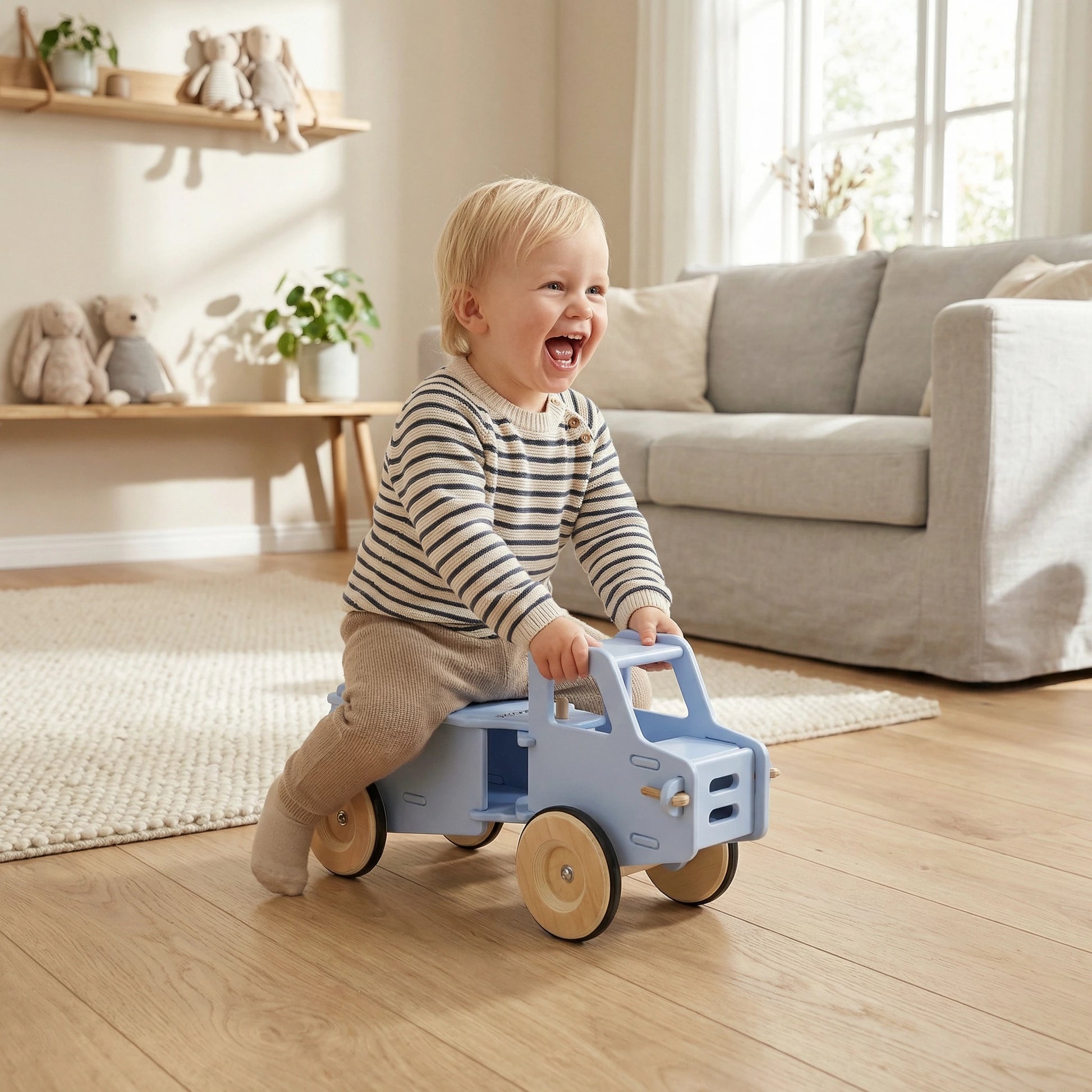 Simple and stylish, the Danish-designed Ride-On Truck is not only sturdy and dependable to promote mobility, but comes with a hidden storage compartment. The best part? The vehicle operates with no noise, to be a toy that both parents and children love.