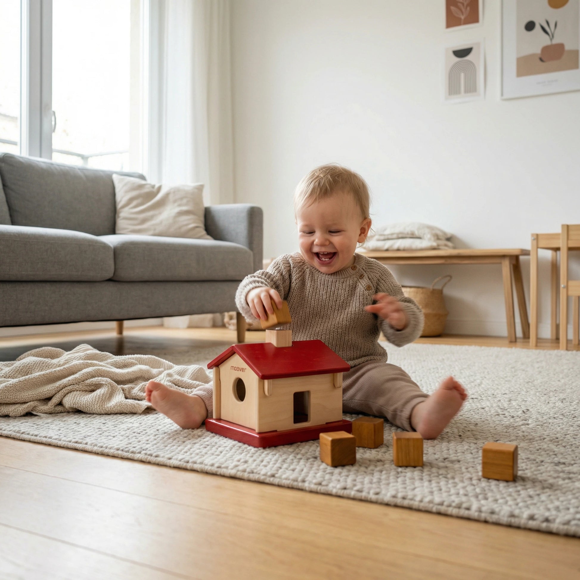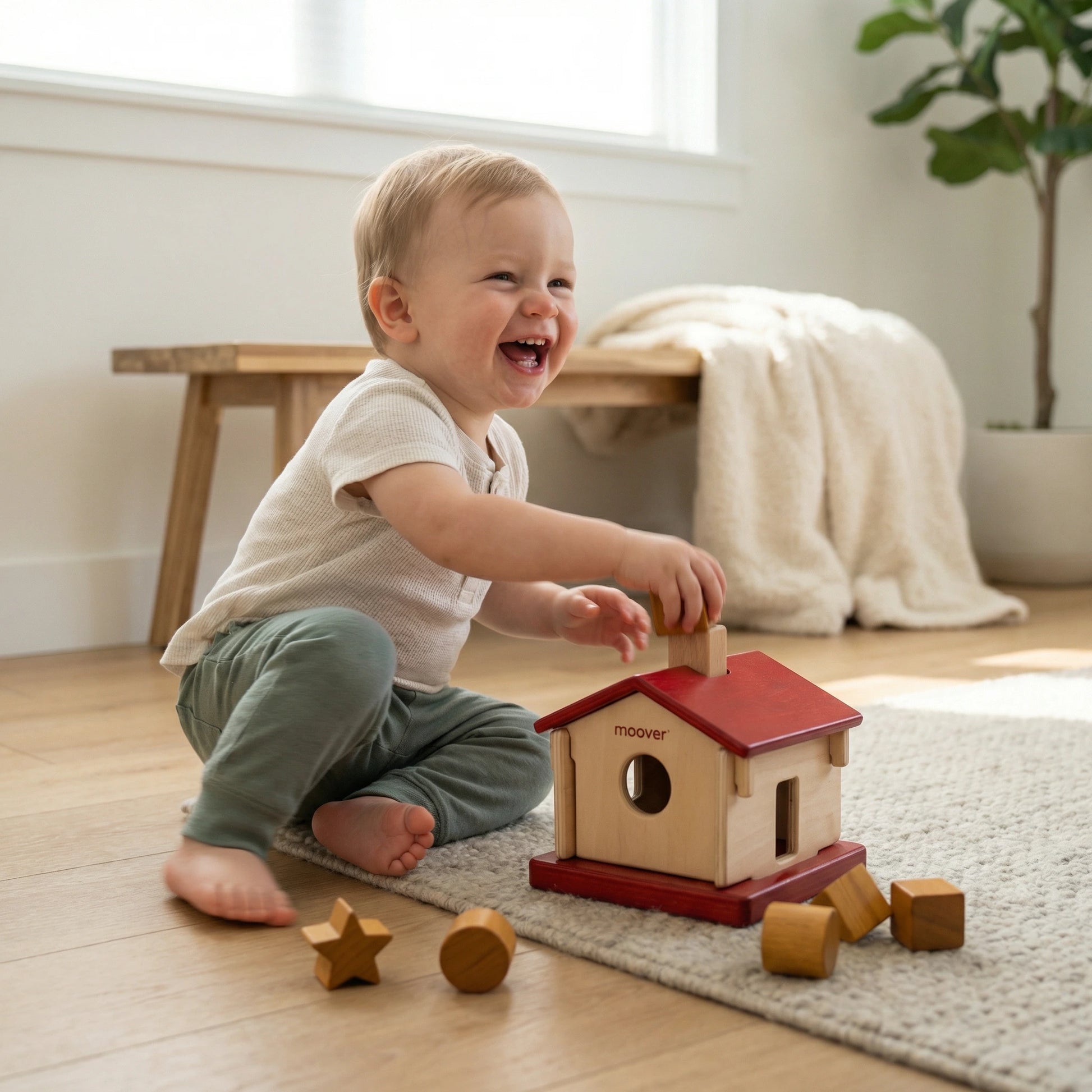 This Sorting House is lots of fun for both the younger and older child. The young child will enjoy putting the shapes through the windows and will progress to building the house as well. Made from 10 and 20mm plywood pieces and measures 17x17x17cm. Includes: 1 Sorting House and 4 shapes.