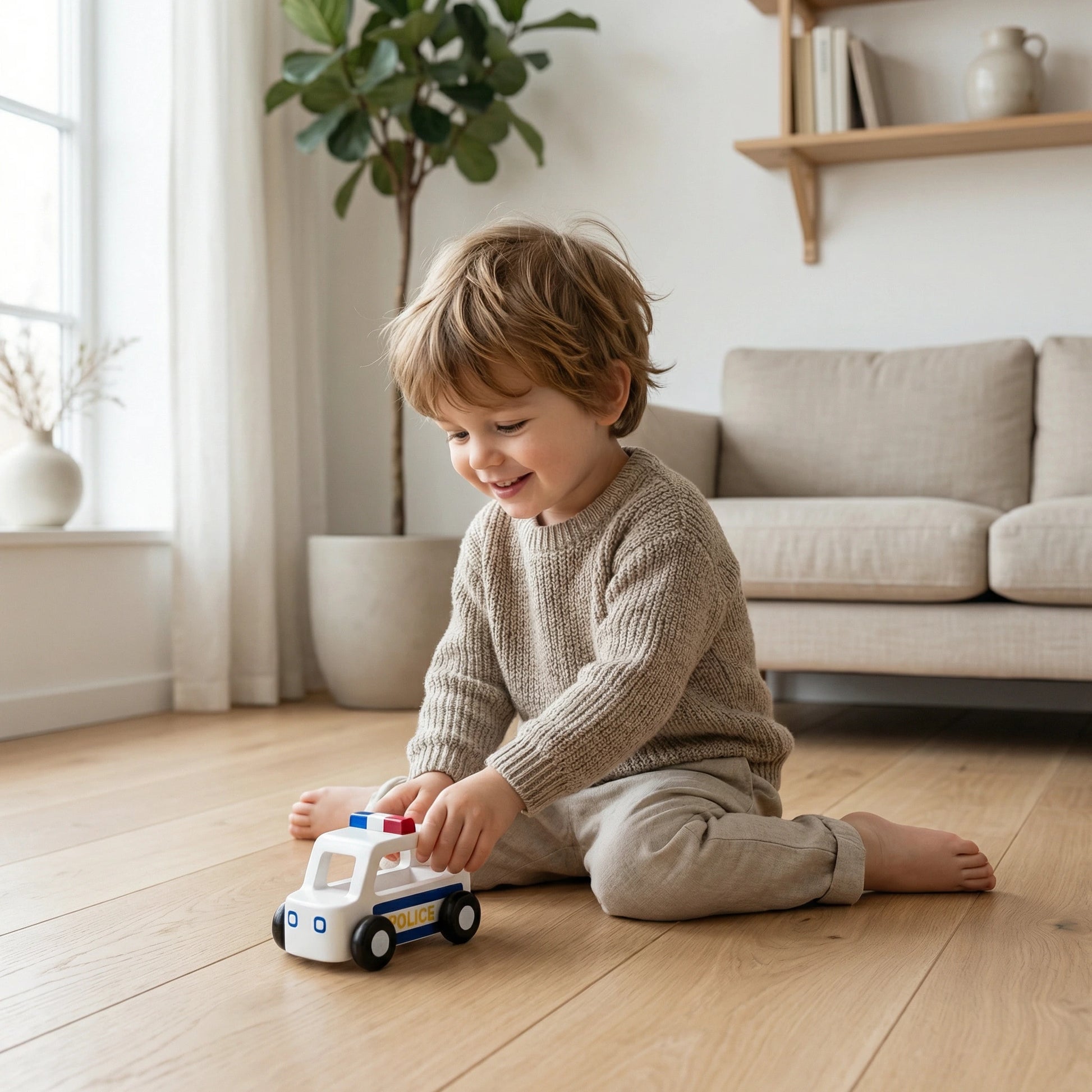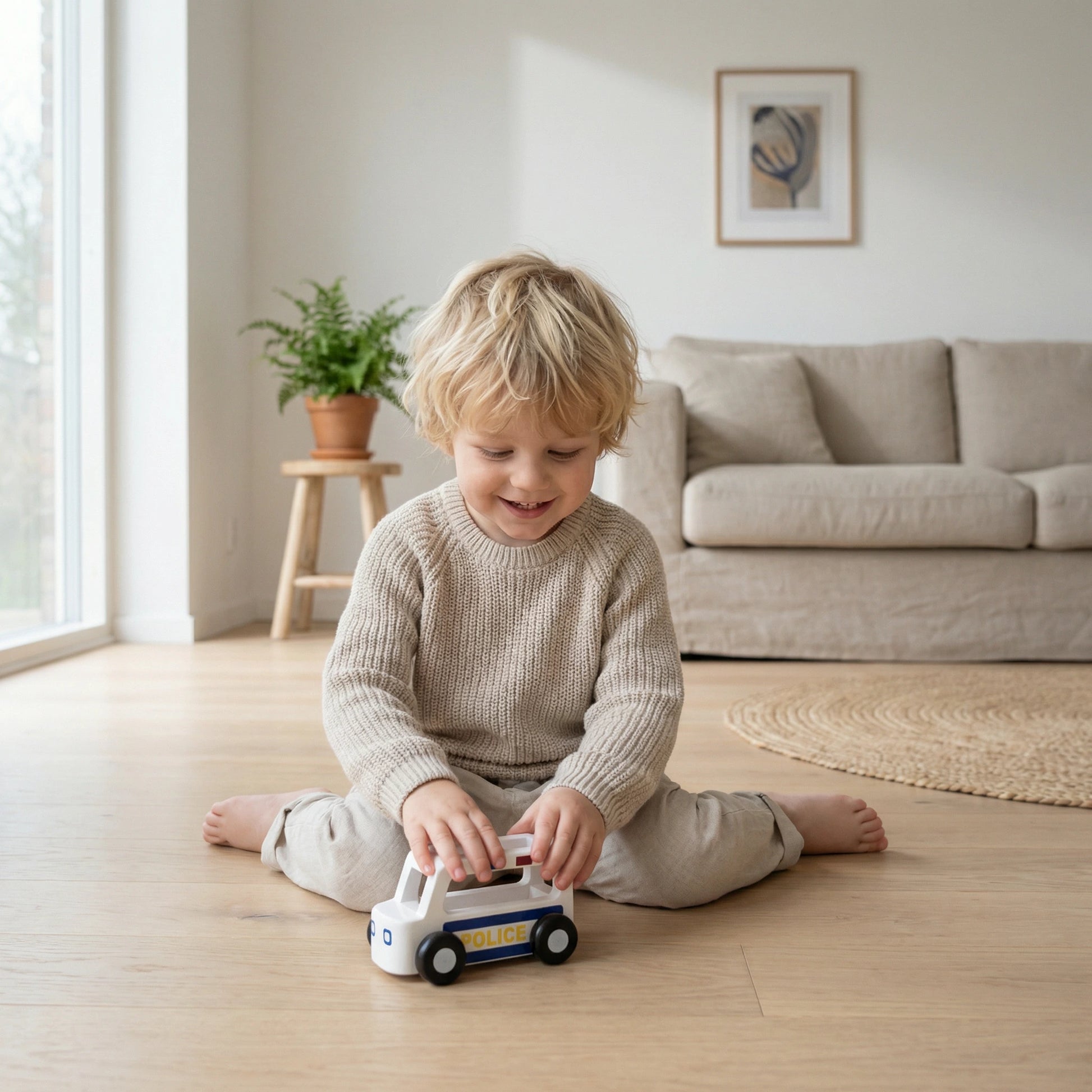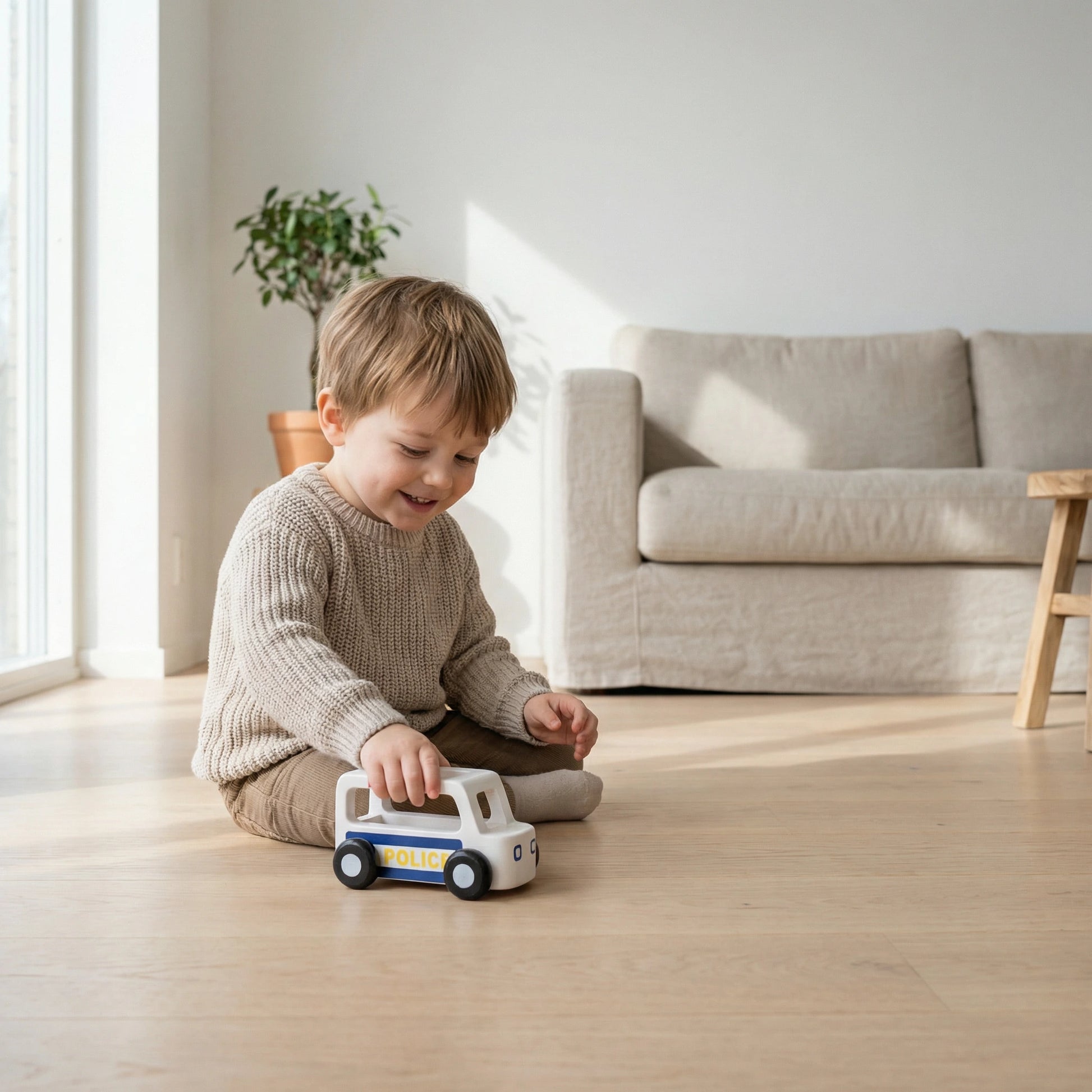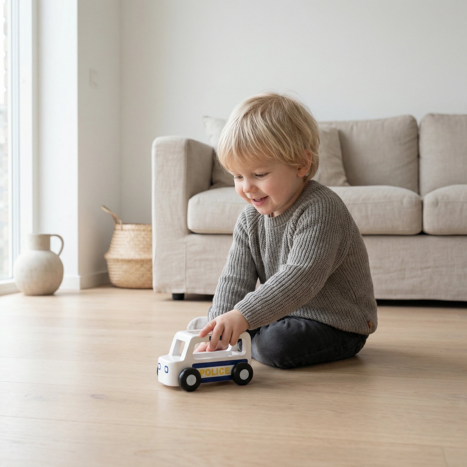 Designed in Denmark, this Moover ESSENTIAL Mini police car, is part of a collection of mini utility vehicles which encourage role play and imagination and will help kids learn about different crafts. Light and sturdy, this car is a perfect match for tiny hands and curious to explore.