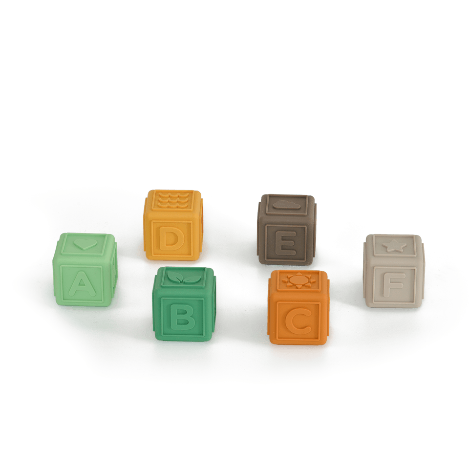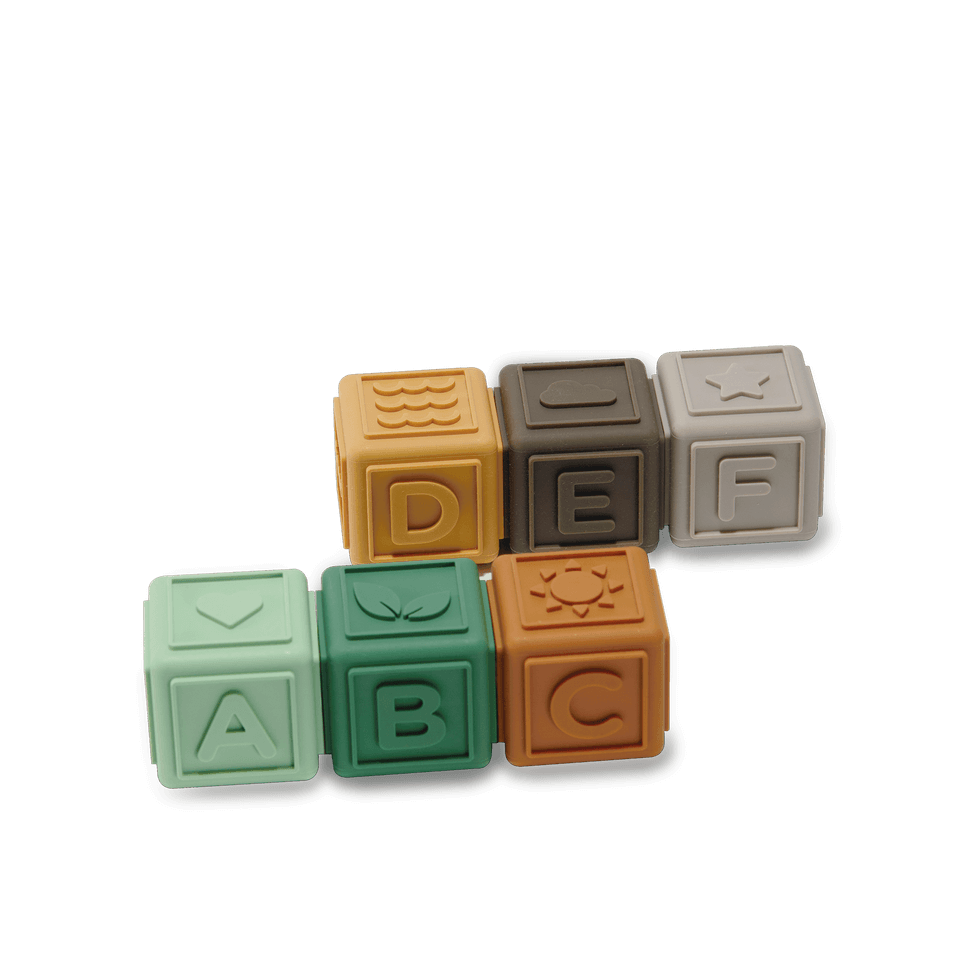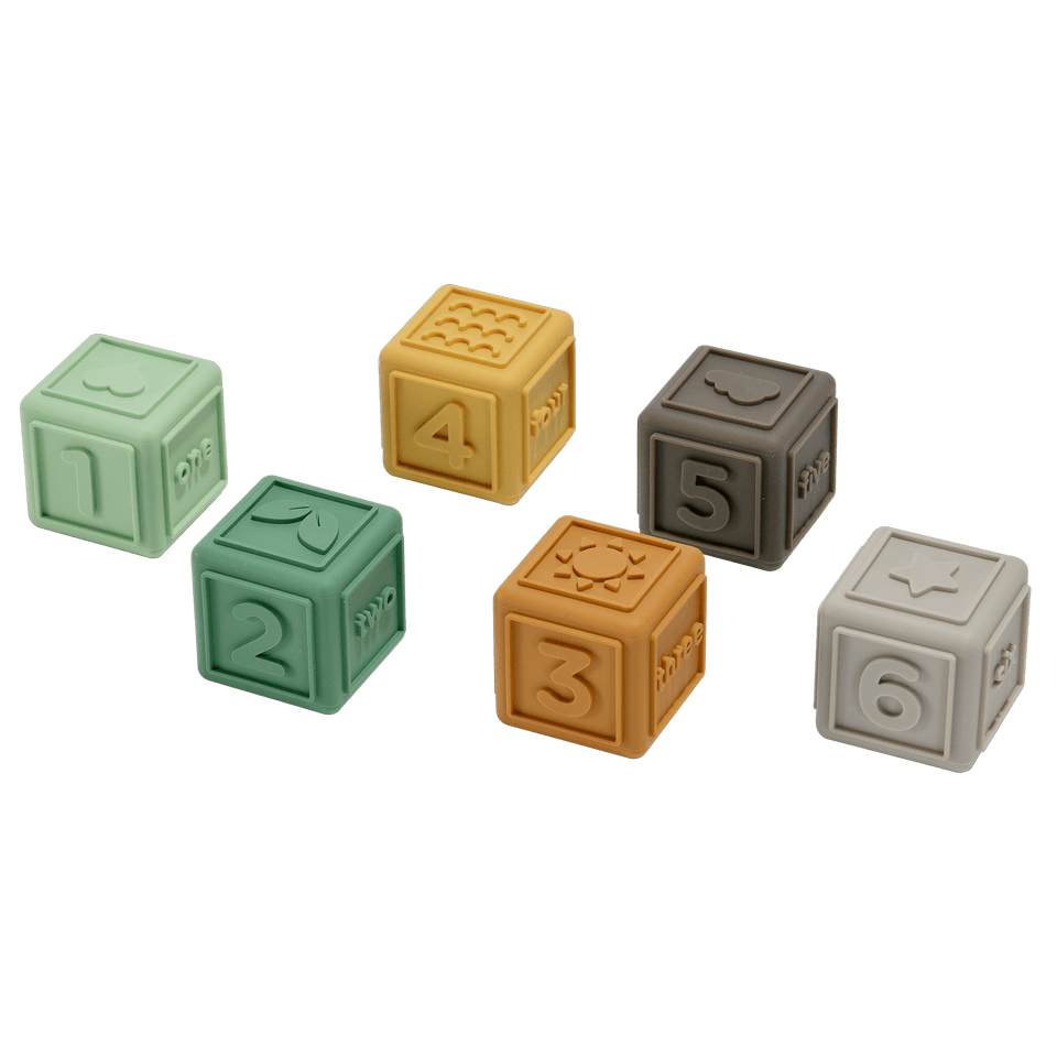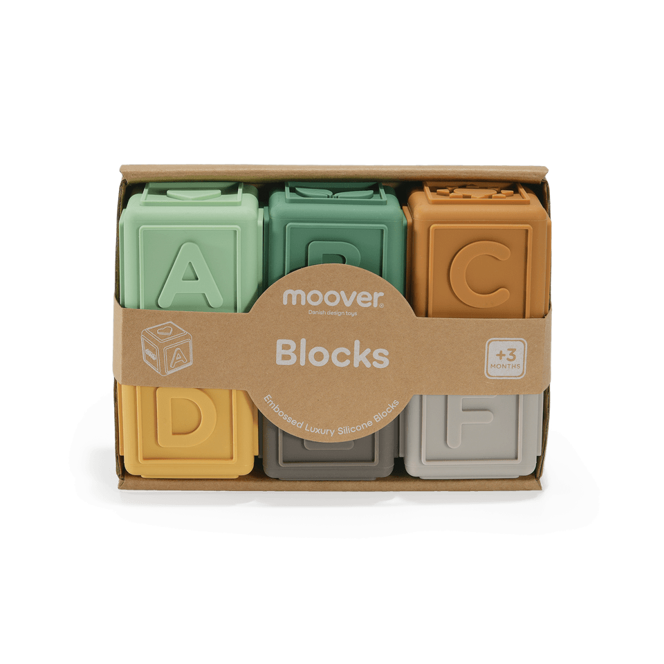 Moover's original toddler and preschool 6-piece set of food grade, silicone embossed blocks. Modern design in gorgeous Scandinavian earth tone colors.Highest-quality luxury toy. Suitable for boys and girls. Stimulates imagination and helps develop creativity, coordination and inteligence. Many ways to play. Endless play value.